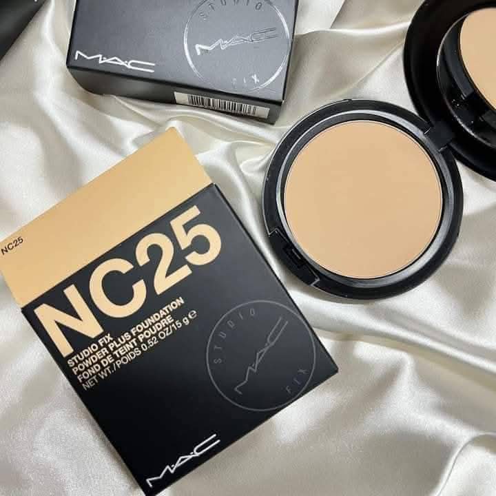 MAC Studio Fix Powder Plus Foundation NC25 offers a long-lasting matte finish with buildable coverage, perfect for light-medium skin tones with neutral-cool undertones.