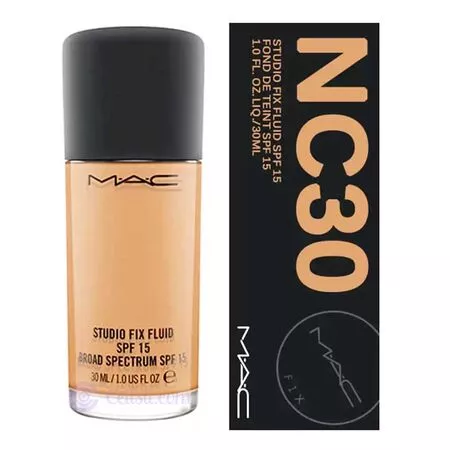 MAC Studio Fix Fluid NC30 delivers long-wear, matte coverage with SPF 15, perfect for medium skin with golden-neutral undertones. Smooth, breathable, and shine-free.