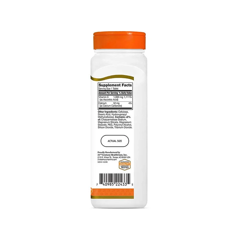 Boost your immunity and support overall wellness with 21st Century Vitamin C 1000mg – 110 Tablets — a high-potency antioxidant formula designed to protect your body against free radicals, strengthen the immune system, and promote healthy skin, gums, and joints. This essential vitamin plays a key role in collagen synthesis, iron absorption, and wound healing, making it a must-have in your daily supplement routine.