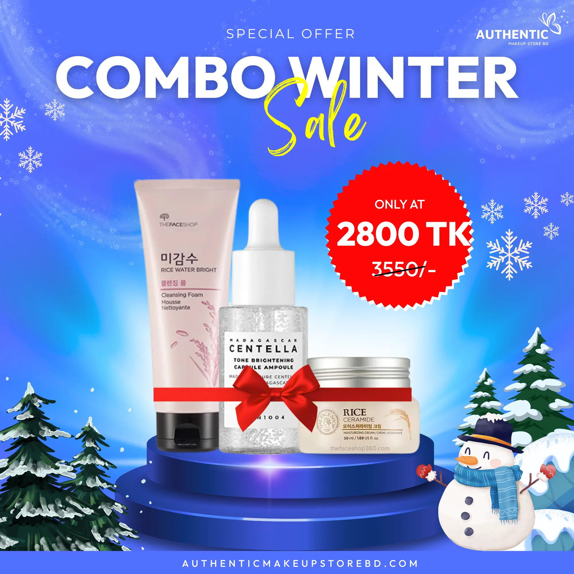k beauty combo, rice water bright cleanser, centella ampoule, rice ceramide cream, winter skincare combo bd, korean skincare bundle, dry skin winter solution, brightening skincare combo, authentic korean products bd, skincare winter sale, tone brightening ampoule, rice ceramide moisturizer, glowing skin products, winter glow combo, k beauty winter set