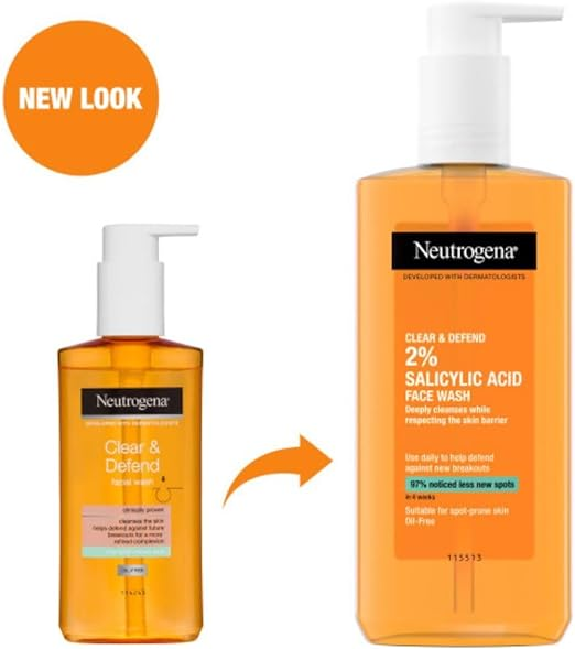 Formulated with salicylic acid, a proven acne-fighting ingredient, Neutrogena Clear & Defend Facial Wash helps to unclog pores, prevent future breakouts, and reduce the appearance of blemishes. Its oil-free, soap-free formula makes it suitable for daily use, ensuring your skin feels clean, refreshed, and balanced after every wash.