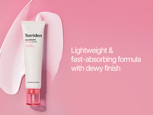 Torriden’s Cellmazing Firming Cream is a scientifically-formulated blend of niacinamide, collagen extract, and amino acids that promote skin elasticity and minimize pores, fine lines, and wrinkles. With hydrating ingredients like sodium hyaluronate and glycerin, this cream delivers soft, smooth, and supple skin for all skin types, even sensitive skin.Tighten pores! Close collagen fitting! #Pore fitting cream : Toridden’s unique 5D complex low-molecular-weight collagen tightly tightens enlarged pores and creates soft, smooth skin as if you woke up after a good night’s sleep. Experience changes in skin elasticity!Elasticity care up to pores, visible pore improvement effect, skin wrinkle improvement effect up to visible wrinkles around the eyes.Tight pore elasticity care with collagen from the outside to the inside of the skin, and between the outside and inside.It is safe for acne-prone skin as it does not clog pores! Non-comedogenic tested.A 4-week human application test was completed on acne-prone skin, so even sensitive skin can use it with confidence.